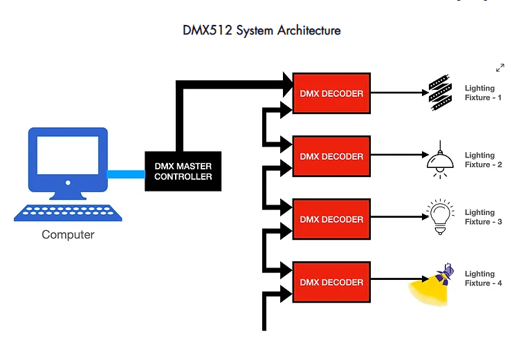 A:If the DMX512 signal line does a good job of impedance matching (the first and last decoder each add a resistance of about 120Ω), more than 32 units can be connected.