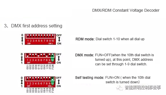 When the signal wire is longer or wire quanlity causes such a recoil effect, can try connect 0.25W 90-120Ω terminal resistance to the DMX decoder end line or the signal terminal of power supply to solve the problem.